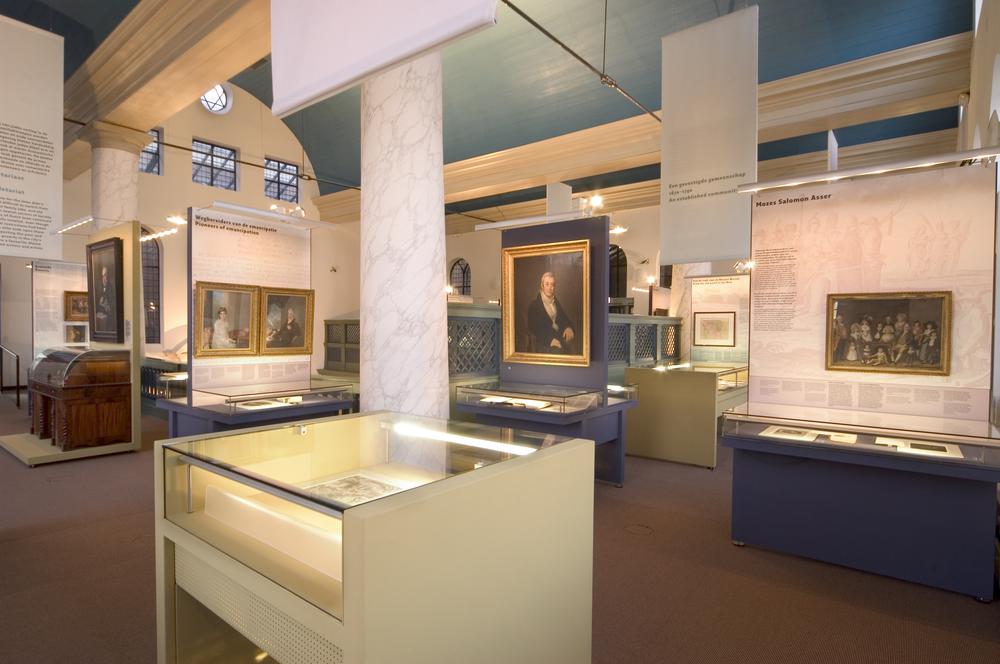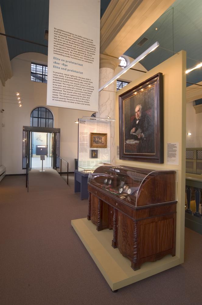 F900841: Vernieuwde vaste opstelling geschiedenis, op de galerij van de Grote Synagoge, 2004