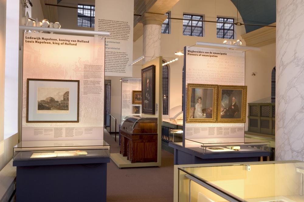 F900836: Vernieuwde vaste opstelling geschiedenis, op de galerij van de Grote Synagoge, 2004