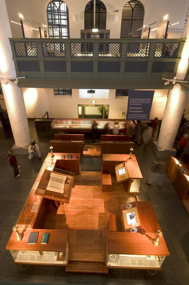 F900845: Bovenaanzicht van de vernieuwde vaste opstelling "Religie" in de Grote Synagoge, 2004
