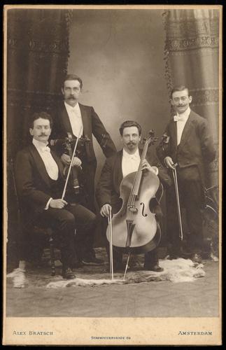 F012164: Portret van strijkkwartet met cellist Jacques Mossel, 1898